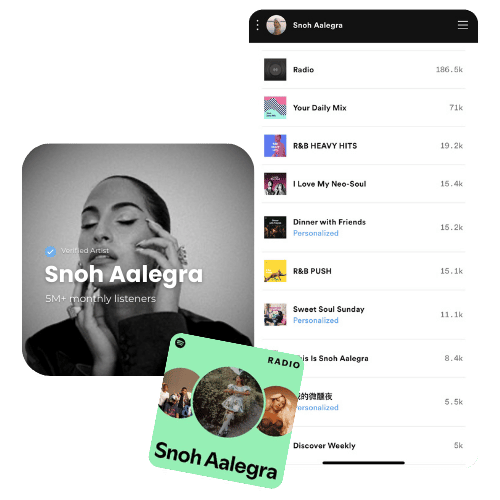 Powered by Music Marketing Mastery Ebook, Snoh Aalegra’s Spotify Radio grew to 186.5K monthly listeners.